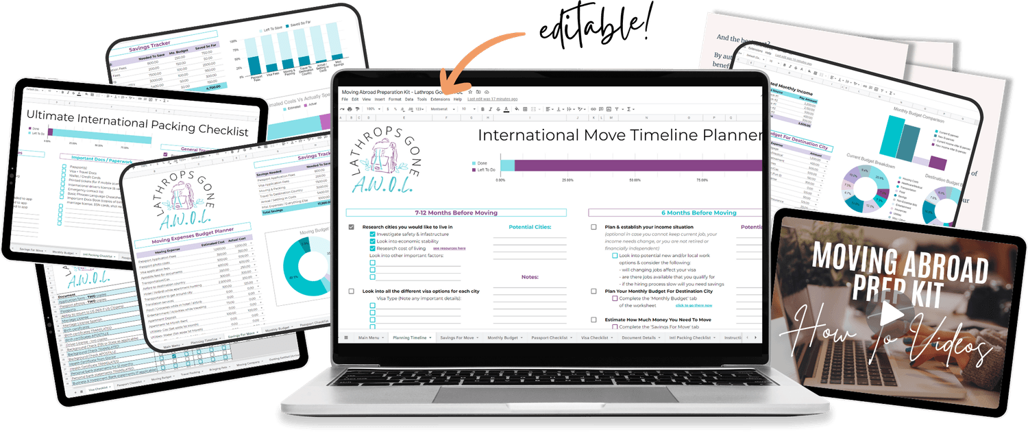 I created the Ultimate Moving Abroad Prep Kit to give you the exact tools and checklists that worked for us- so you can focus on the adventure ahead, not the overwhelm.