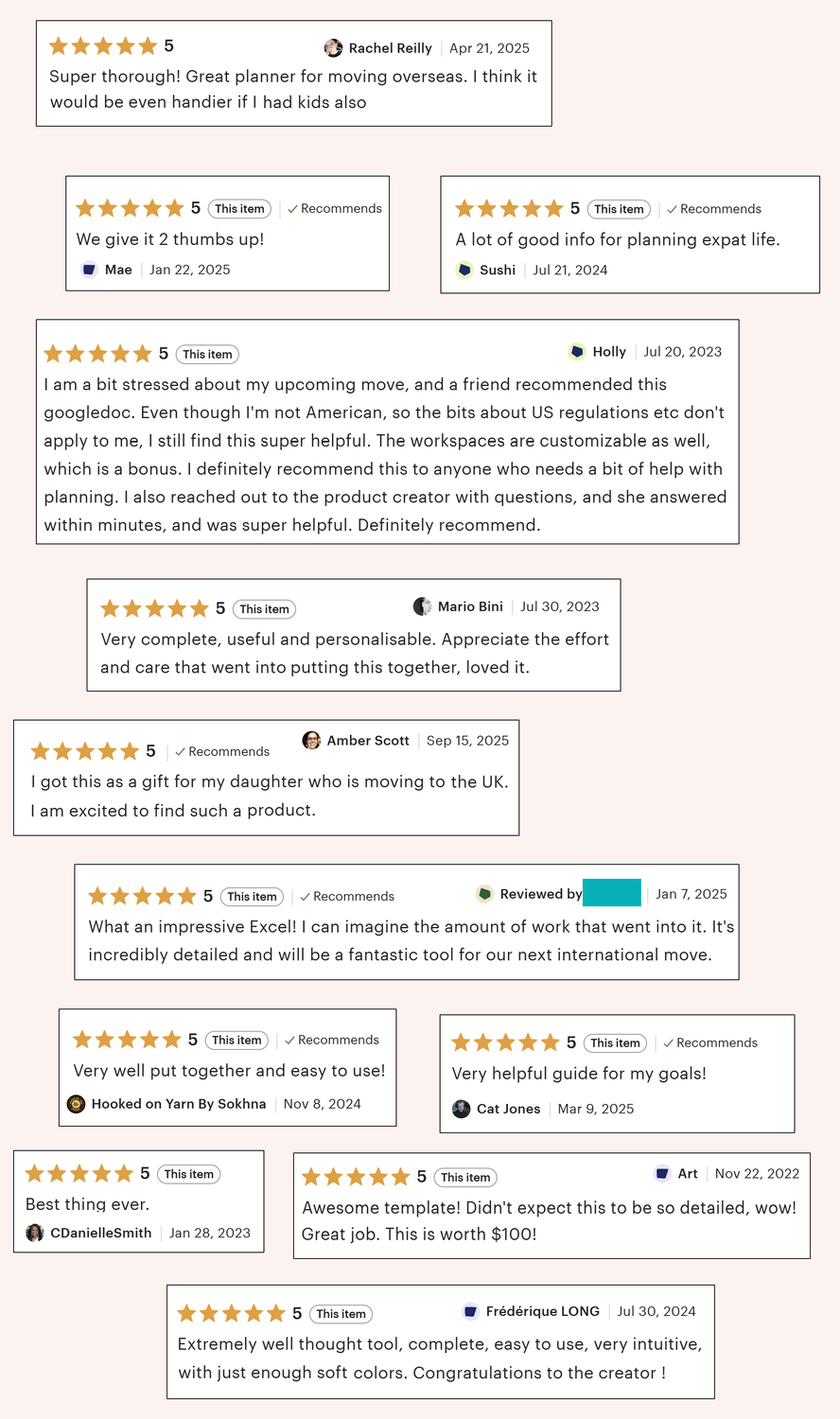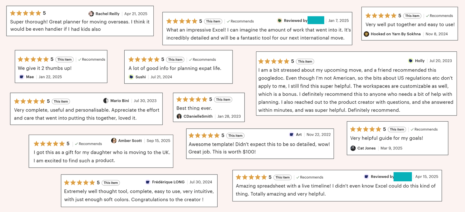 Incredibly helpful. Until I found this, the only resources I had found to guide me through an international move all came from moving companies. And there is so much more to a move than the moving company! Definitely recommend to anyone needing some guidance about where to start.