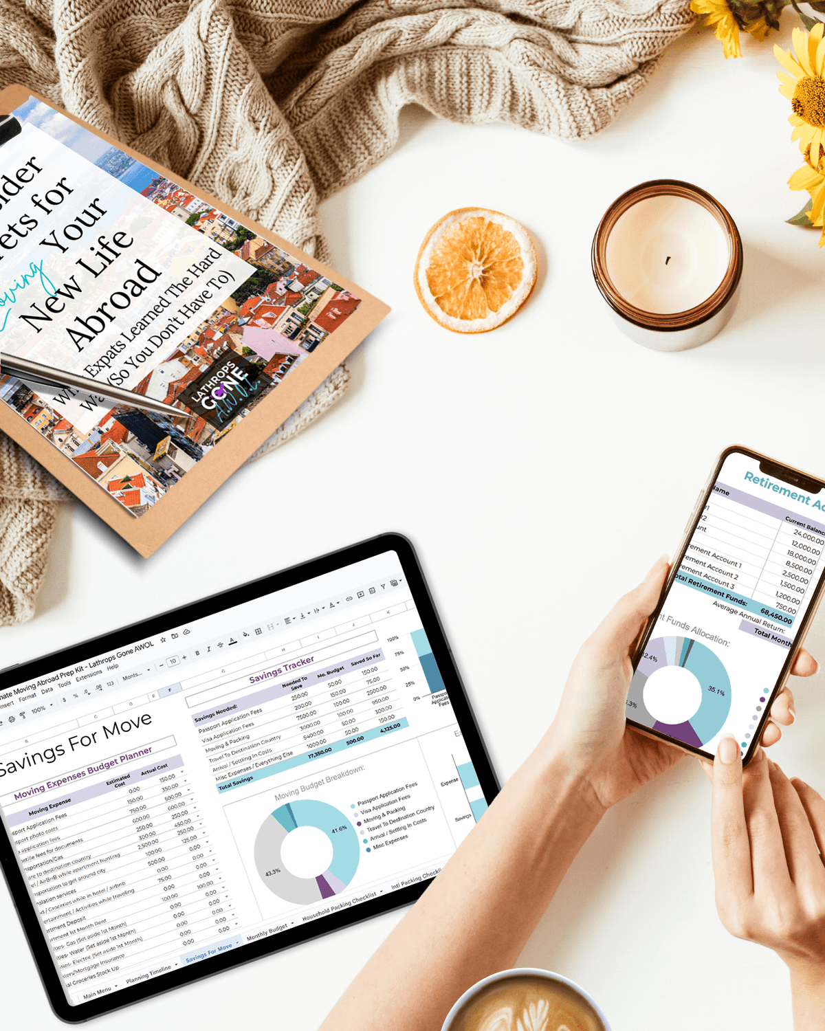 ⭐ A Moving Savings Tracker to plan how much your move will cost- from shipping and housing to flights, paperwork, and transition expenses.